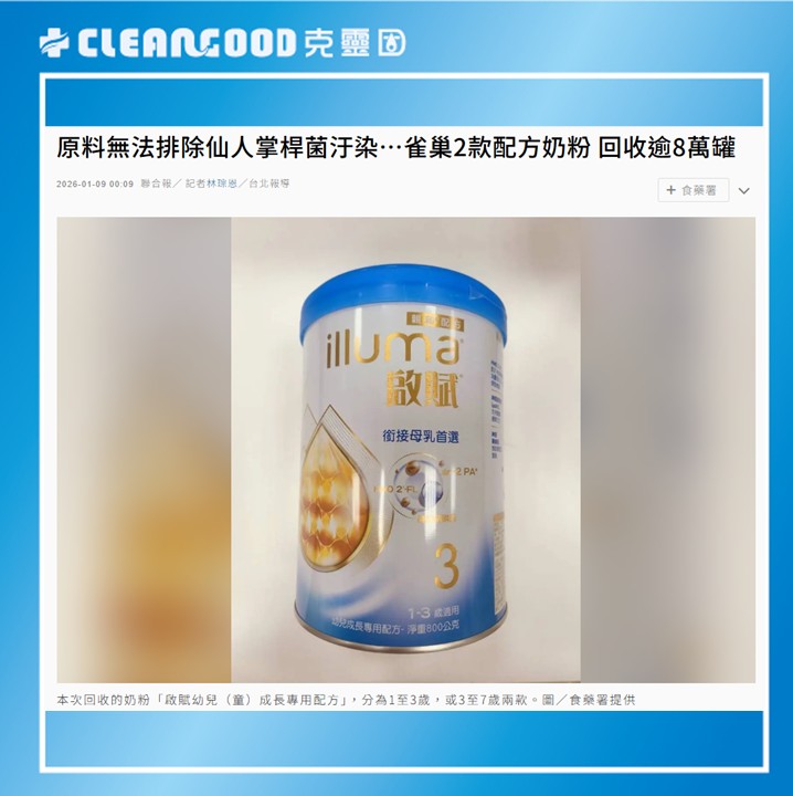 【新聞】原料無法排除「仙人掌桿菌」汙染…雀巢2款配方奶粉 回收逾8萬罐
